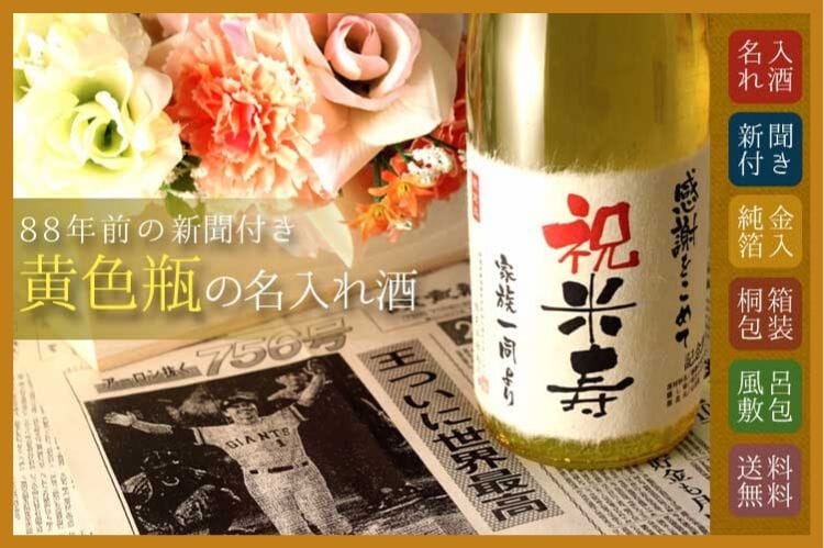 こちらもちゃんちゃんこ同様、米寿祝いの名前入りのお酒とセットになっている場合が多いです。オプションによっては、無料で記念日新聞を添えてくれるお店もありますので、オプションやサービス内容をチェックしてみてくださいね。