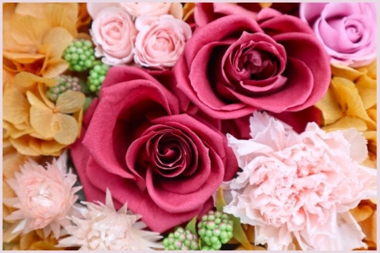 生花は生き生きとした活力がありますが、手入れや水やりの負担を考えて百寿祝いには手入れ不要のプリザーブドフラワーが選ばれる傾向にあります。