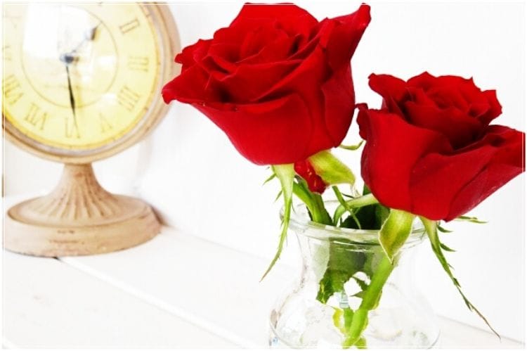 還暦祝いに贈るプリザーブドフラワー置き時計は、お花にバラの花など赤色の花が使われているものがおすすめ。