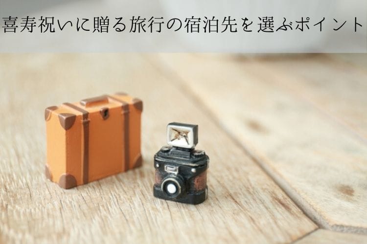 喜寿祝いに旅行を贈る際に宿泊先を選ぶポイントや、旅行先で贈りたいおすすめプレゼントについてご紹介しました。