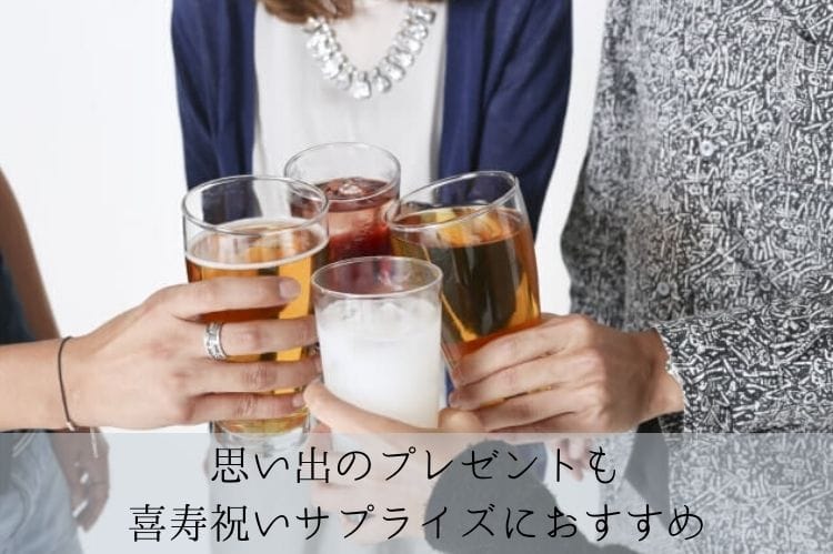 また、ラベルと瓶の色を見れば一目で喜寿のお祝いの品と分かるので、喜寿祝が終わった後も記念品として楽しんでもらうことができます。