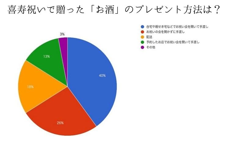 続いて、喜寿祝いでお酒をプレゼントするときはどのような方法で渡せばよいのか、アンケート調査をもとにご紹介していきます。