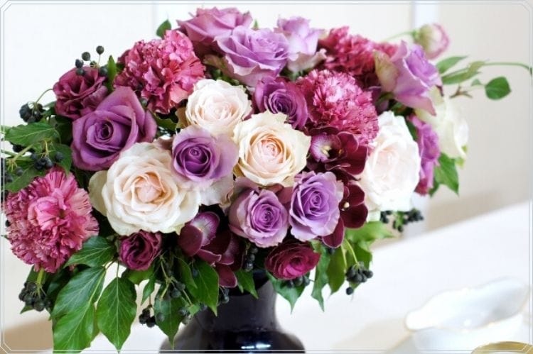 お花が好きな女性の方には、紫を基調とした花をテーブルに置いて楽しんでもらうのも素敵な演出です。