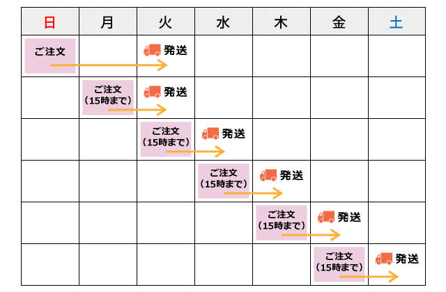 (※1)あくまでも予定日ですので、ご注文のタイミングによって変わる場合がございます。