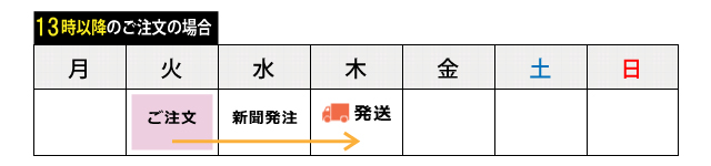 ご注文が13時までであれば、翌日の発送が可能です。