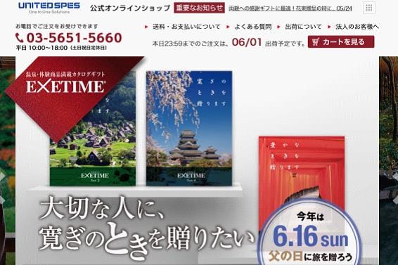 EXETIME(エグゼタイム)は、温泉・体験ギフトの老舗です。1980年代後半頃からカタログギフトの提供をはじめ、現在まで多くの支持を得ています。カタログギフトは、Part1からPart5までの5種類に加えて、最上級のEXETIME(エグゼタイム)プラチナムが存在します。