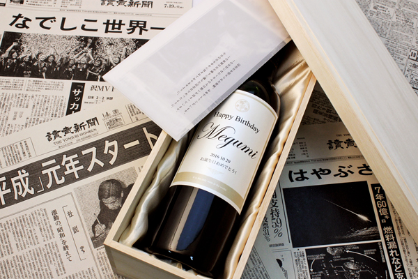 記念日新聞は折りたたんで半透明の封筒に入れ、ワインと一緒にお届けします。封筒には、
