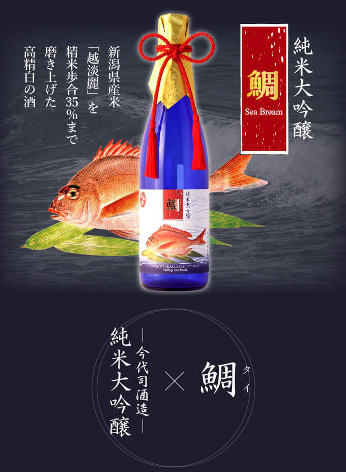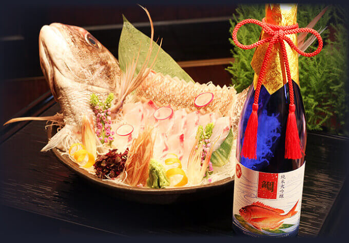 開封すると、純米大吟醸に特有の香気がゆっくりと、やわらかく薫ります。一口飲むと口の中に広がり、鯛の繊細た甘みと旨みのマリアージュが最高です。鯛の良さを最大限に醸し出す事のできる美酒に仕上がっています。